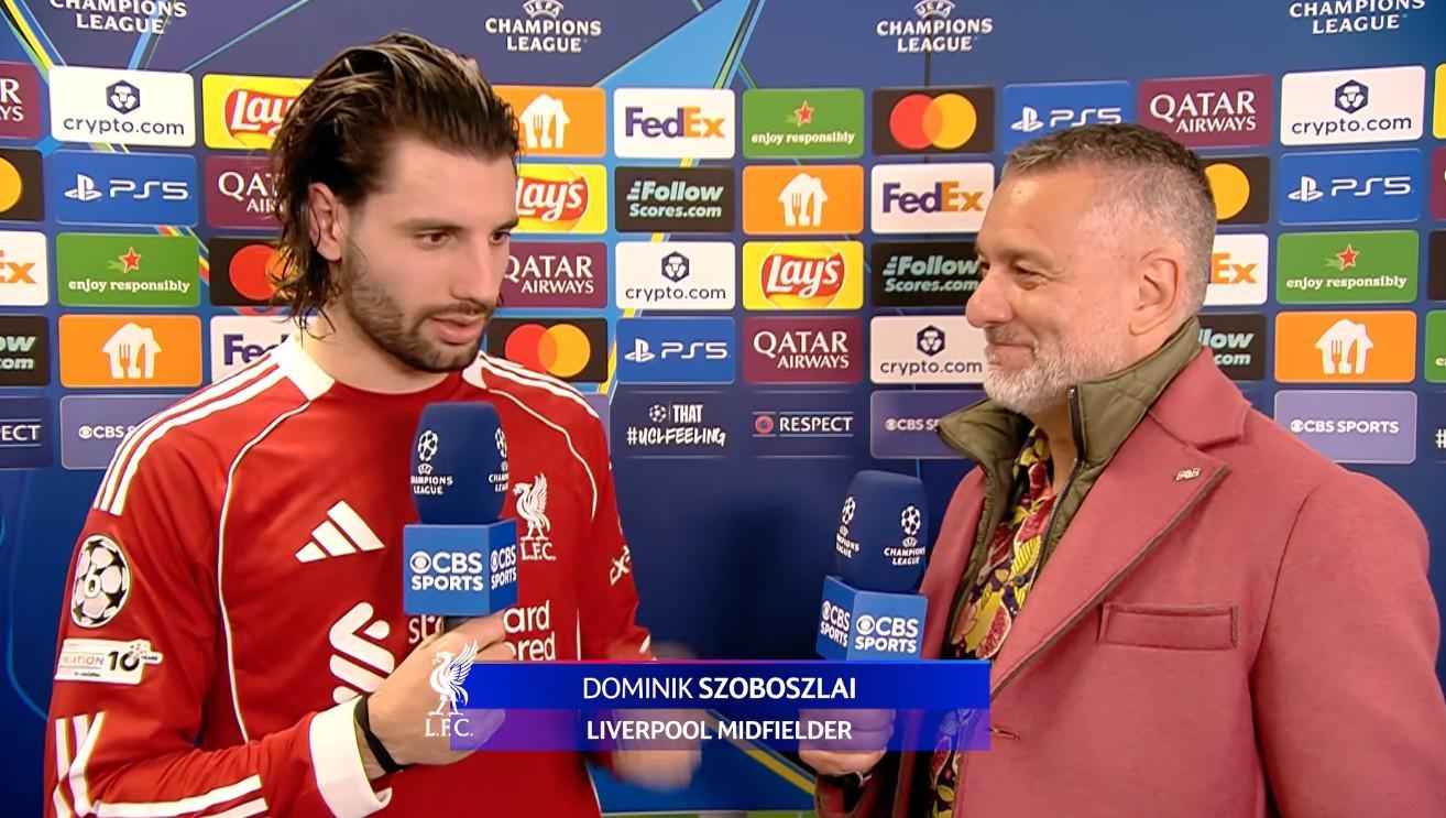 欧冠联赛阶段第7轮,利物浦客场3-0击败马赛,利物浦中场索博斯洛伊赛后接受了CBS体育的采访。